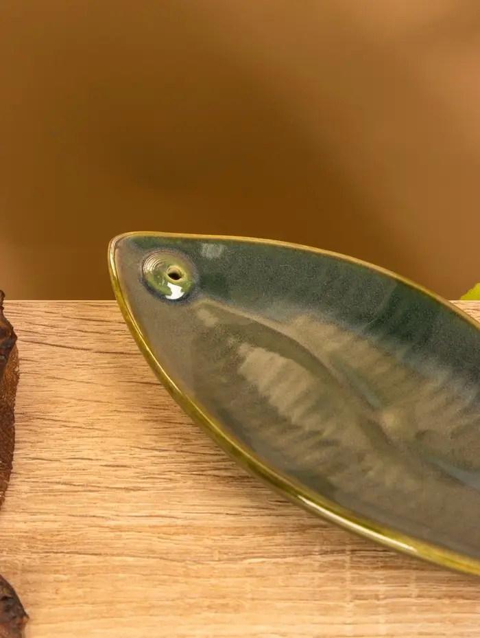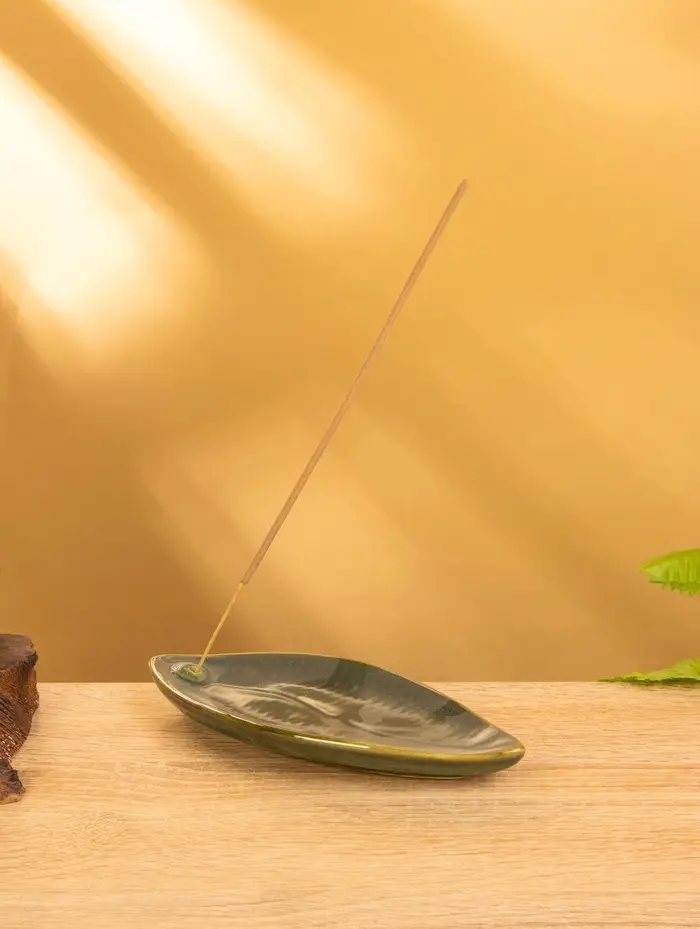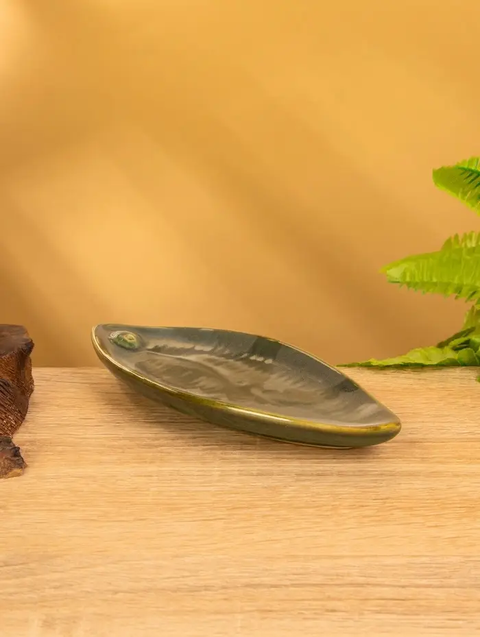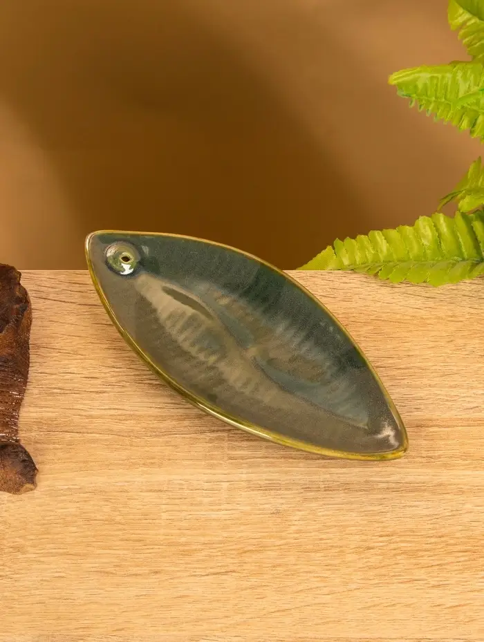 Подставка под благовония "Длинный лист" керамика, цв. зелёный, 17х7х1,5 см