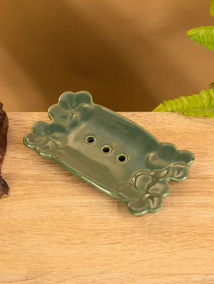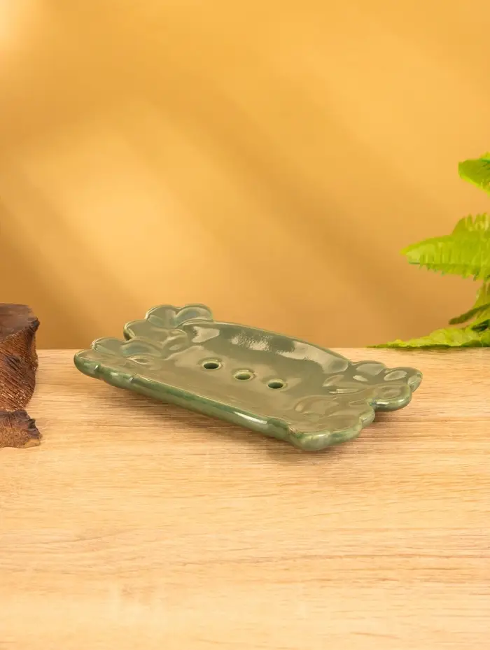 Мыльница "Цветочный мост" керамика, цв. зелёный, 14,5х7,5х2 см