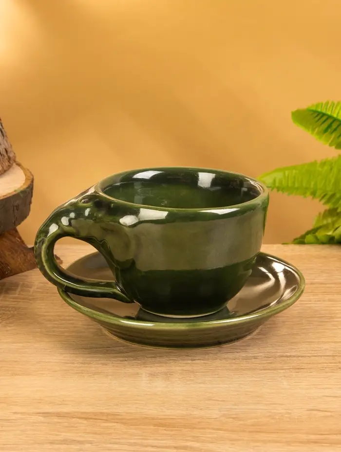 Чашка с блюдцем «Слоник», 13×13×8 см, керамика, зелёная