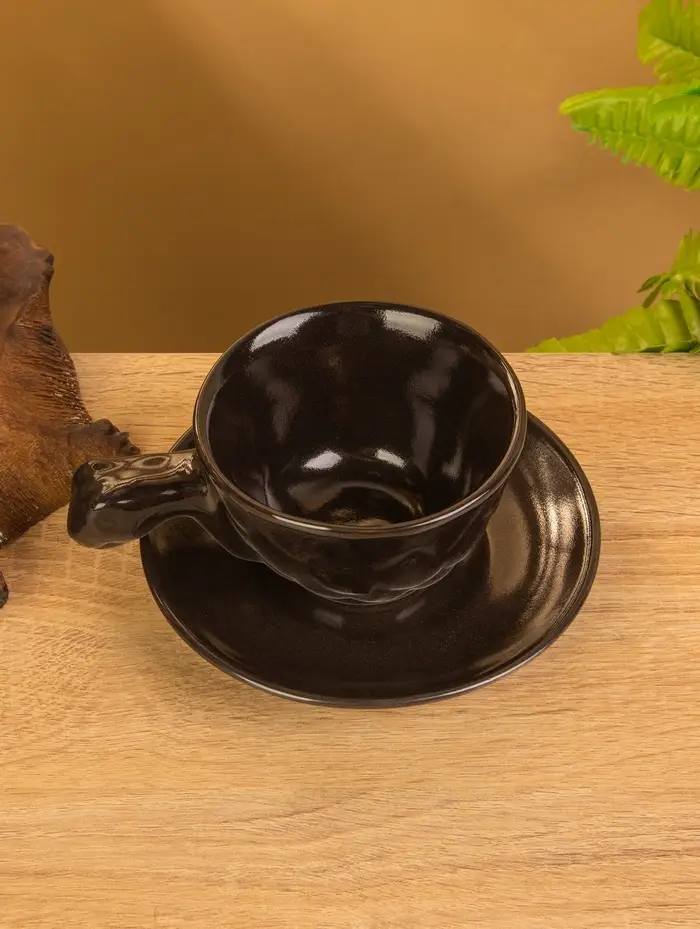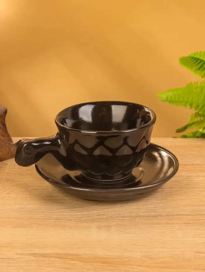 Чашка с блюдцем «Черепашка», 13×13×7 см, керамика, тёмно-коричневая