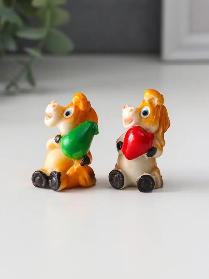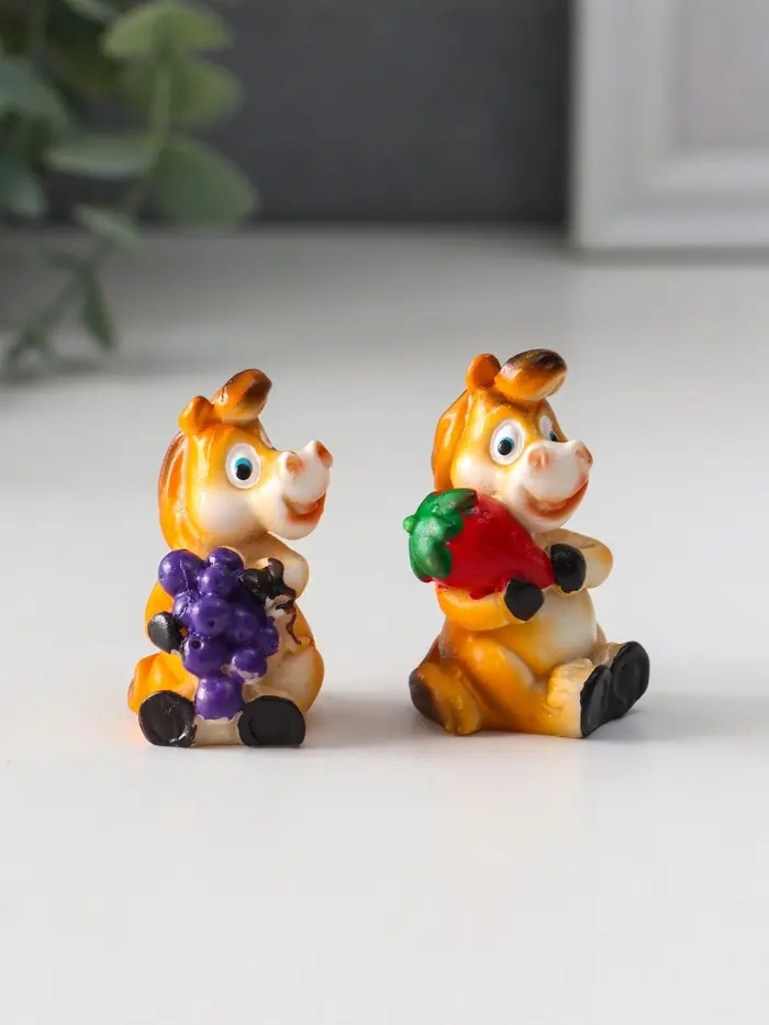 Сувенир полистоун "Коняшка с фруктиком" МИКС 2,2х2,5х4,7 см