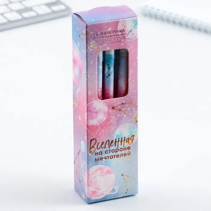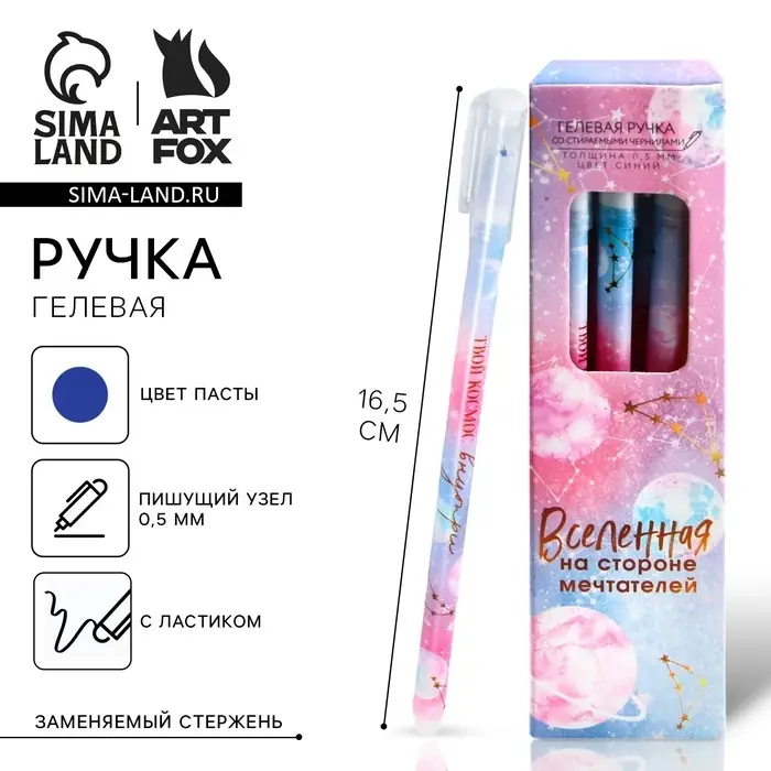 Ручка пиши-стирай, пластик с колпачком, синяя паста, гелевая 0.5 мм. «Твой космос внутри»