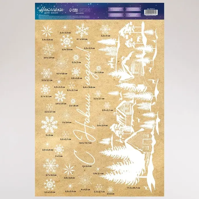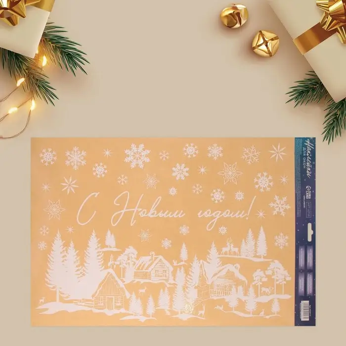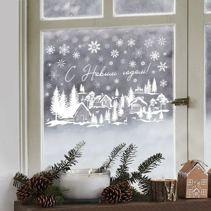 Наклейки для окон «Зимняя деревушка», многоразовая, 33 х 50 см