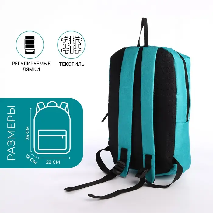 Рюкзак молодёжный на молнии, водонепроницаемый, 3 наружных кармана, цвет бирюзовый