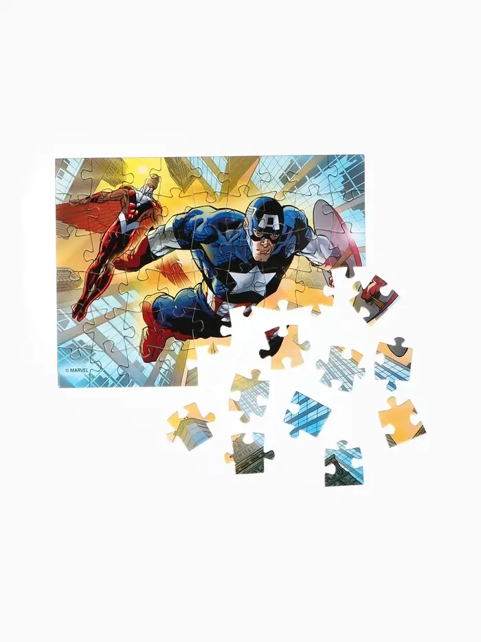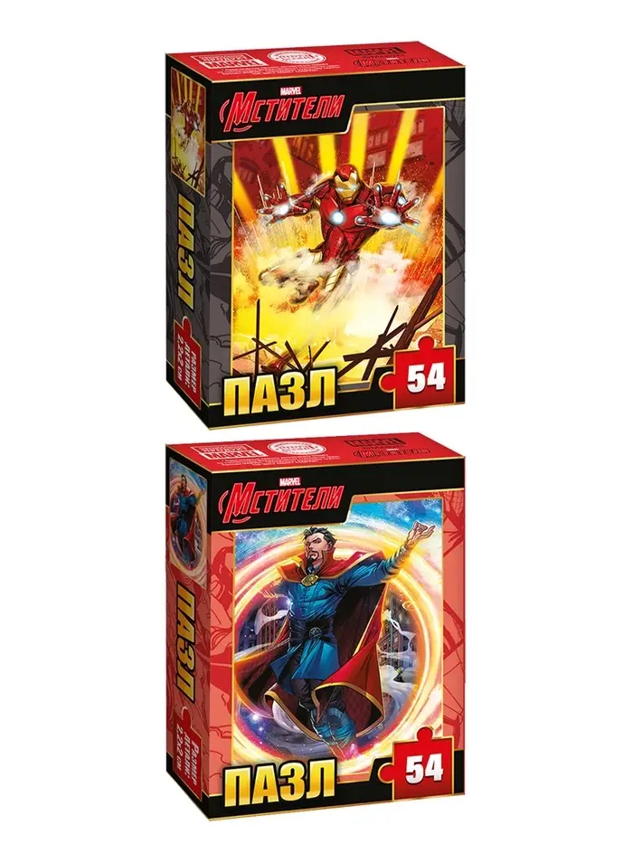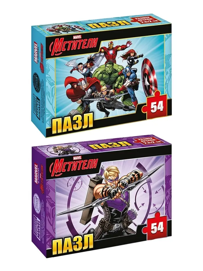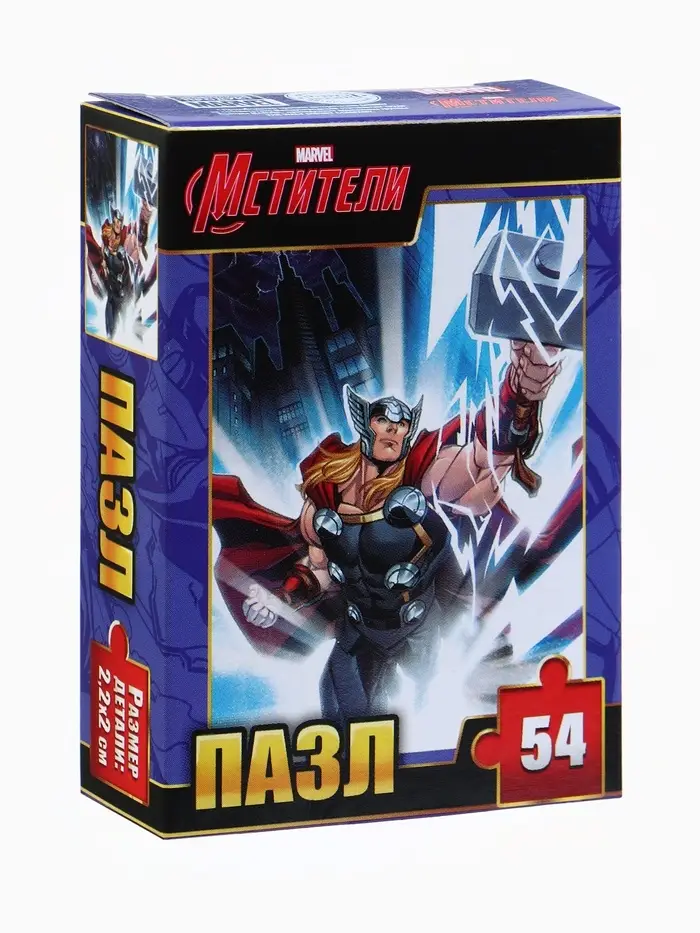 Пазлы «Мстители» — это набор из 10 классических картонных картинок для мальчиков от 3 лет. Каждая головоломка состоит из 54 деталей и собирается в яркое изображение любимых супергероев вселенной Марвел. Тематика супергероев, персонажей и героических приключений создаёт атмосферу волшебства и вдохновляет на творческую игру.