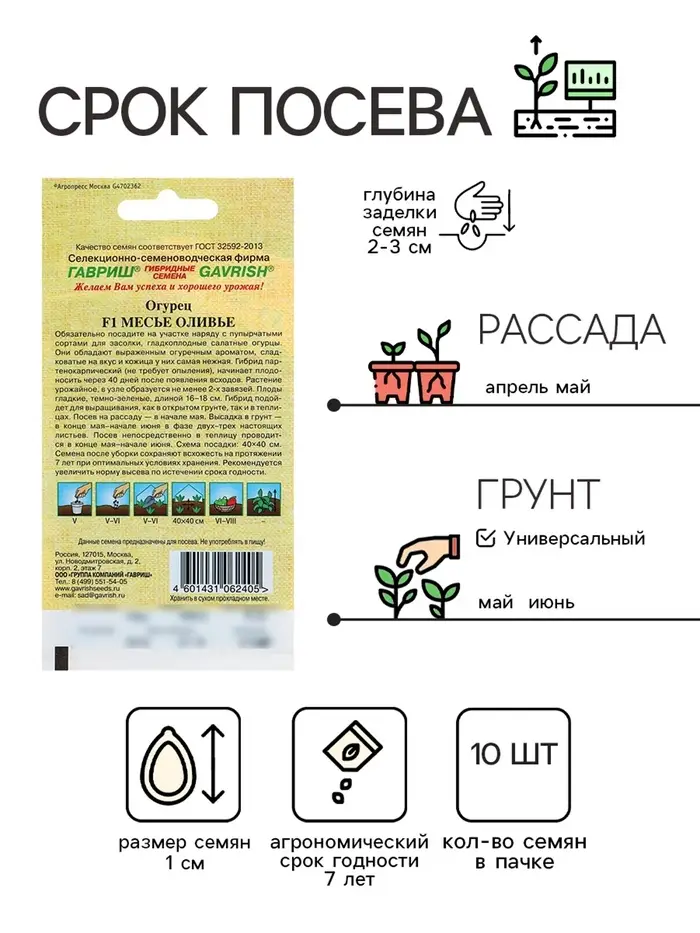 Семена Огурец "Месье Оливье" салатный F1, партенокарпический, 10 шт.