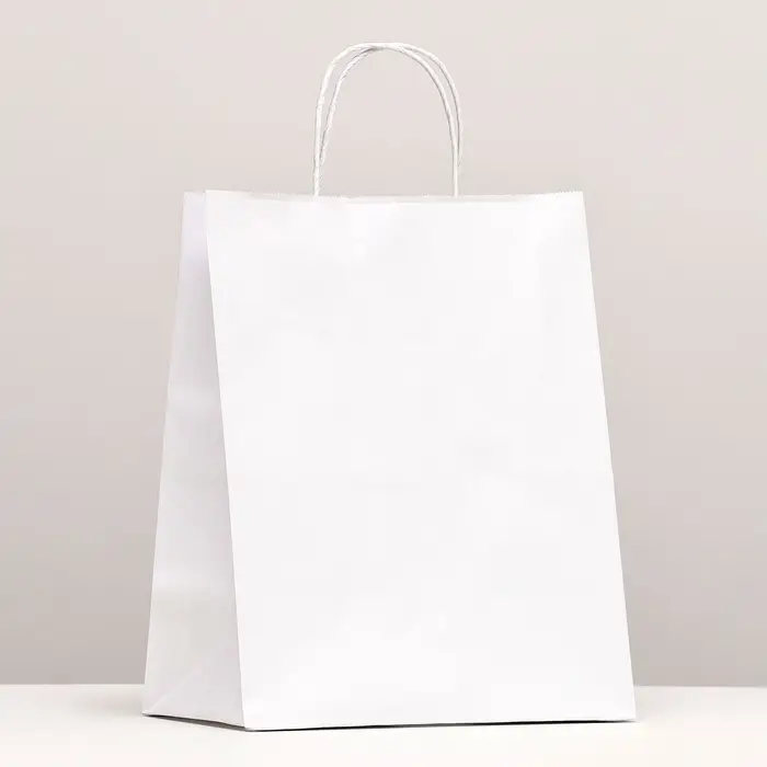 Элегантная упаковка для особых моментов! Белый крафт-пакет с круглой ручкой 24×14×28 см — стильное решение для подарков и презентабельной упаковки. Чистый белый цвет придает особую торжественность любому содержимому.