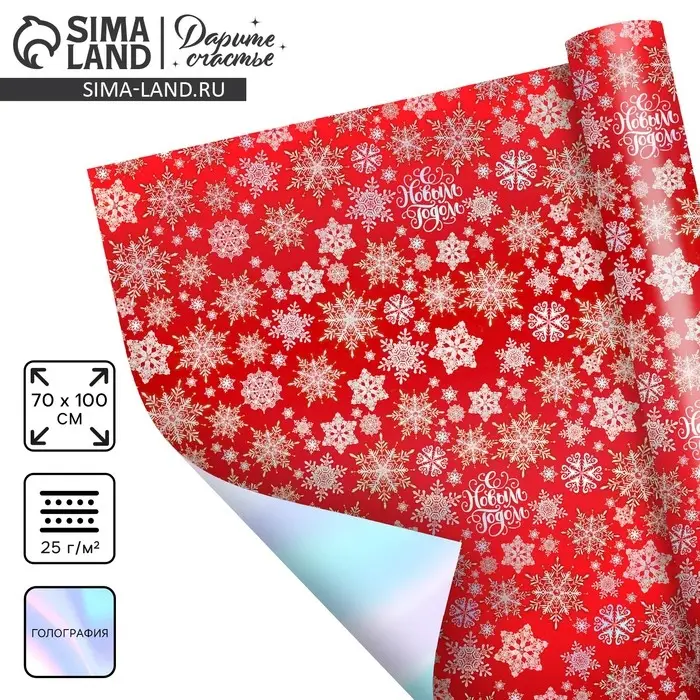 Плёнка упаковочная на Новый год полиграфичная «С Новым годом!», 70 х 100 см