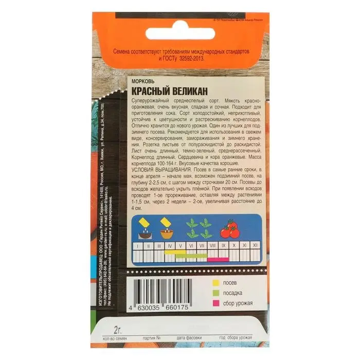 Семена Морковь "Красный великан", 2 г