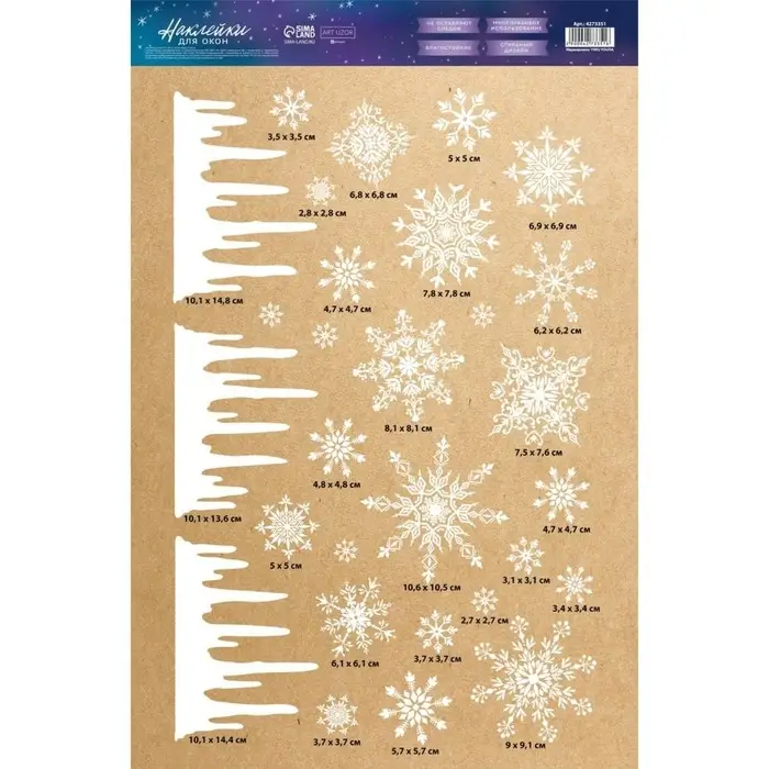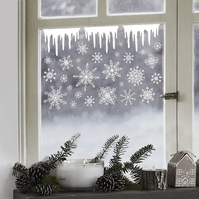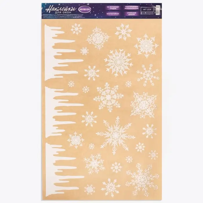 Наклейки новогодние для окон «Cнежинки», многоразовые, 33 х 50 см
