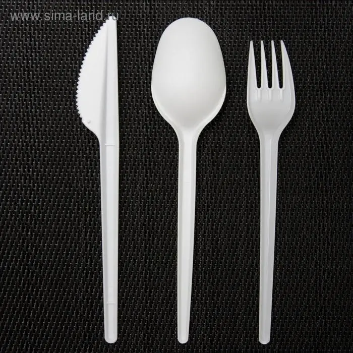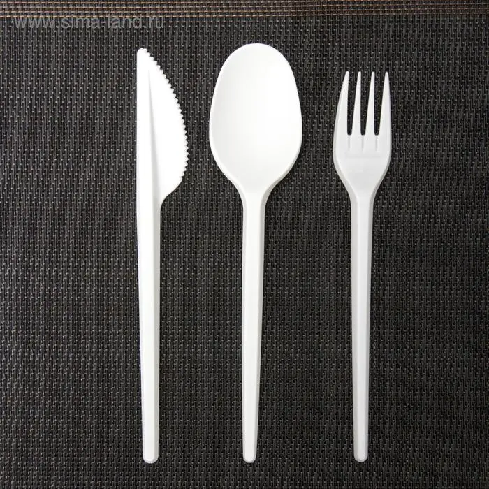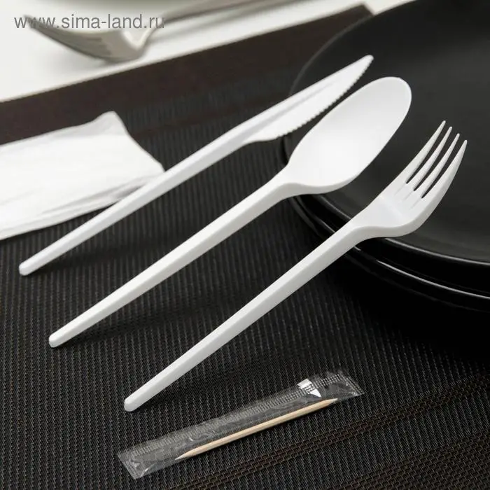 Набор пластиковых одноразовых столовых приборов 5 в 1: вилка, ложка, нож, салфетка, зубочистка, цвет белый