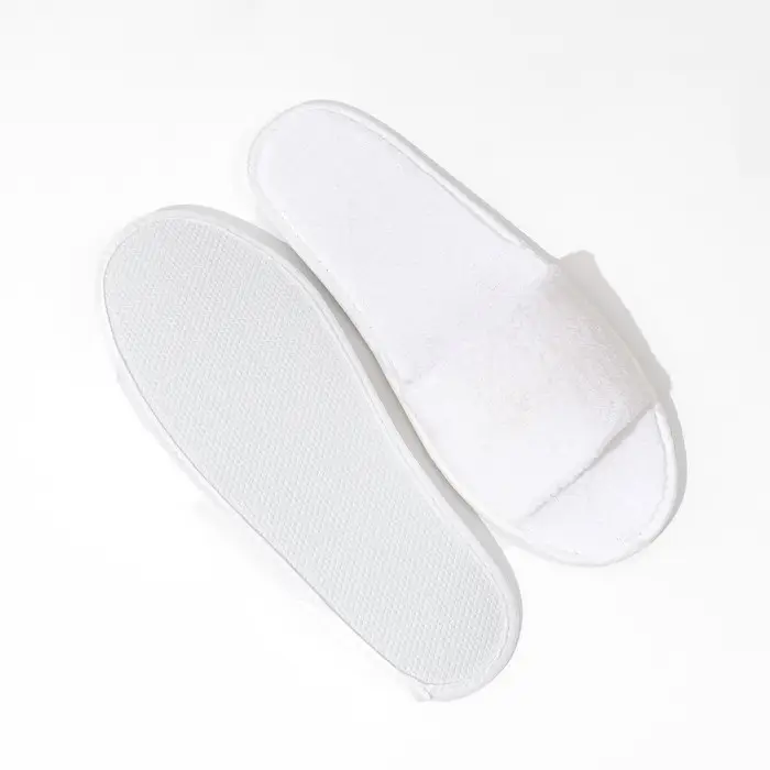 Одноразовые белые розовые с открытым мысом на нескользящей подошве имеют ровные швы и прошиты плотной ниткой. Союзка (верхний мыс) так же прошит с двух сторон, что значительно повышает прочность тапочка и обеспечивает длительное ношение без повреждений. Одноразовую обувь очень удобно взять с собой в дорогу или предложить гостям.