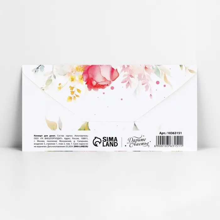 Конверт для денег «Для тебя с любовью», 16.5 х 8 см
