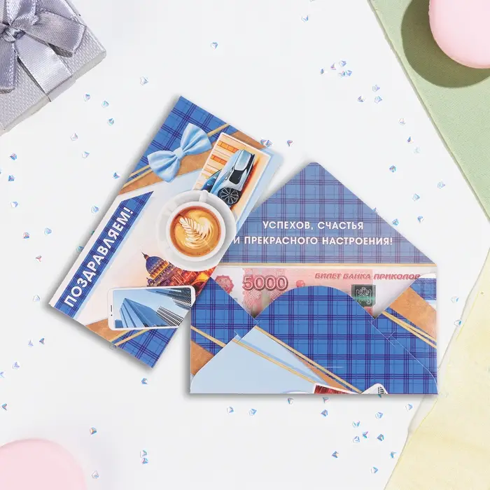 Конверт для денег "Поздравляем" кофе, 16,5 х 8 см