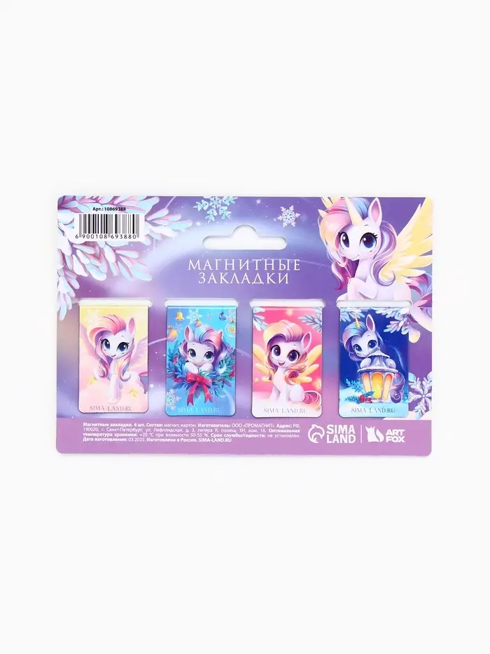 Магнитные закладки "Пони", 4 шт мини