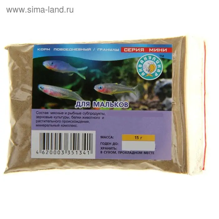 Идеальный корм для мелких и средних аквариумных рыб. Корм отличается высокой усвояемостью, не замутняет воду.