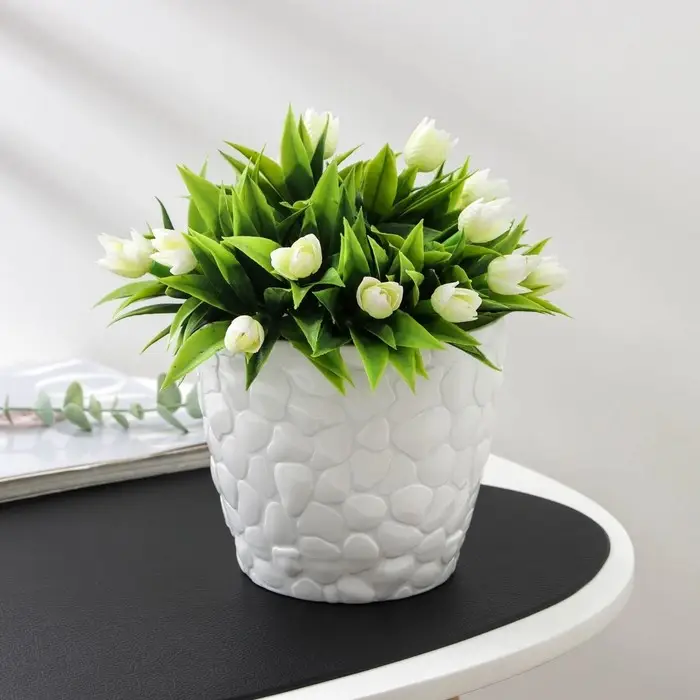 Горшок с поддоном «Камни», 1,4 л, белый
