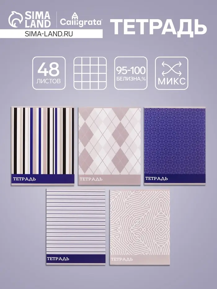 Тетрадь 48 листов в клетку Calligrata «Стильные узоры», обложка мелованный картон, блок офсет, МИКС