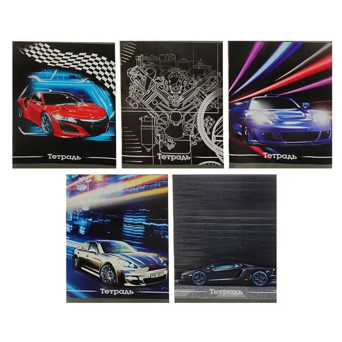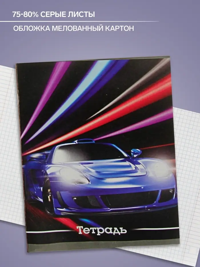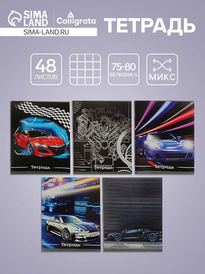 Тетрадь 48 листов в клетку, Calligrata «Авто», обложка мелованный картон, серые листы, МИКС