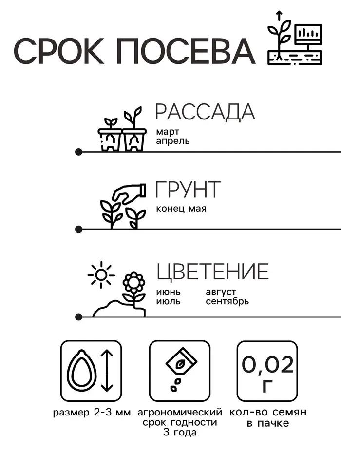 Особенности выращивания: растение предпочитает солнечное место, легкие, сухие почвы, минимальный полив. семена высевают в марте-апреле в рассадные ящики, слегка и ставят в светлое место. При температуре почвы +25 °C всходы появляются на 10-12 день. в грунт рассаду высаживают в конце мая, выдерживая расстояние между растениями 25-30 см. возможен Посев в мае сразу в открытый грунт. легко переносит жаркие засушливые периоды.