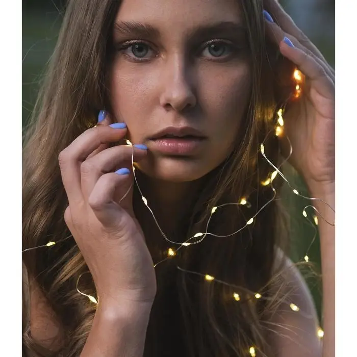 Гирлянда «Нить» 1 м роса, IP20, серебристая нить, 10 LED, свечение жёлтое, CR2032х2