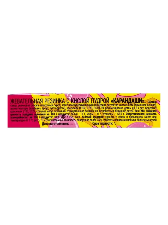 Жевательная резинка «Карандаши» – это весёлое и оригинальное лакомство, которое привнесет радость и свежесть в ваш день. Эти резинки выполнены в виде миниатюрных карандашей, что делает их не только вкусными, но и визуально привлекательными.