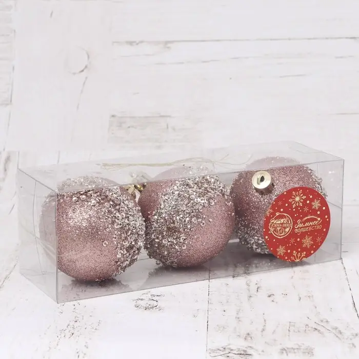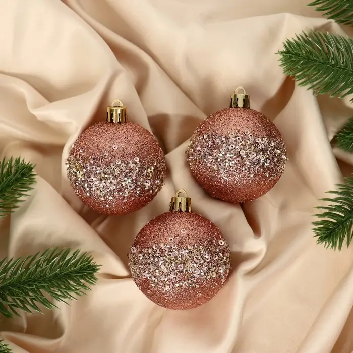 Новогодние шары нежного розового цвета — это мягкий, но выразительный акцент для праздничной ёлки в скандинавском стиле. Три пластиковые игрушки диаметром 6 см станут изысканным элементом декора и добавят интерьеру романтичного настроения без лишней вычурности. Такие украшения идеально подходят для создания уюта и зимней сказочности в доме к Новому году.