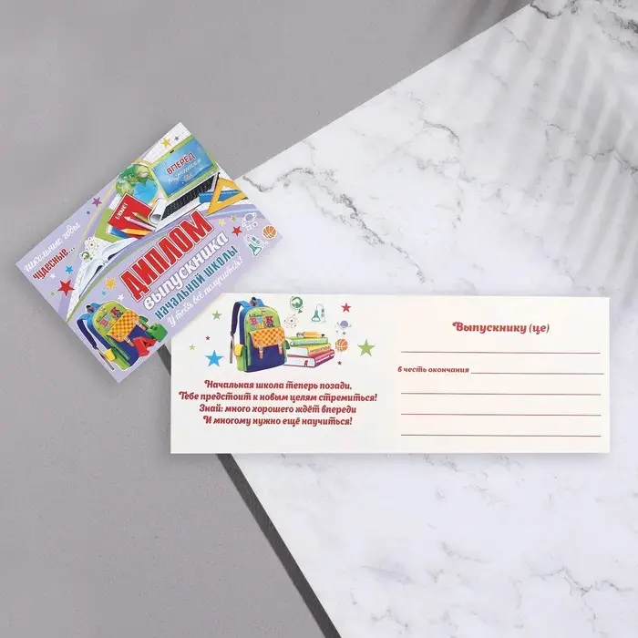 Диплом "Выпускник начальной школы!" ноутбук, 44,5х16,5 см