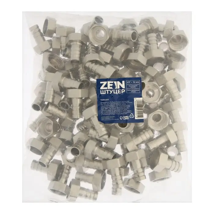Штуцер ZEIN, 1/2" х 12 мм, внутренняя резьба, никелированная латунь, фасовка 100 шт.