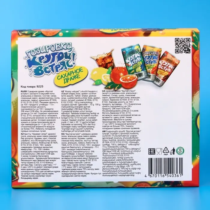Сахарное драже "Крутой встряс" в виде популярной газировки - это оригинальный сладкий подарок для мальчиков и девочек! Драже в индивидуальной упаковке с ярким дизайном, которую можно взять с собой на прогулку, в поездку, путешествие, в детский сад или школу. Такое угощение придется по вкусу любому сладкоежке! Прекрасный подарок детям на любой праздник.