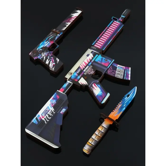Набор сувенирное оружие «Некромантика», автомат М4А4, пистолет с глушителем, нож-штык, 3 шт