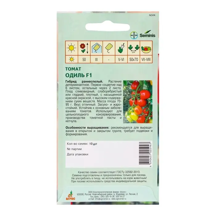 Гибридные семена томатов «Одиль» — идеальный выбор для тех, кто ищет раннеспелые и неприхотливые растения. Эти семена отличаются детерминантным типом роста, что делает их подходящими для открытого грунта. С посевом на рассаду можно начинать уже в марте-апреле, а агрономический срок годности семян составляет 4 года.