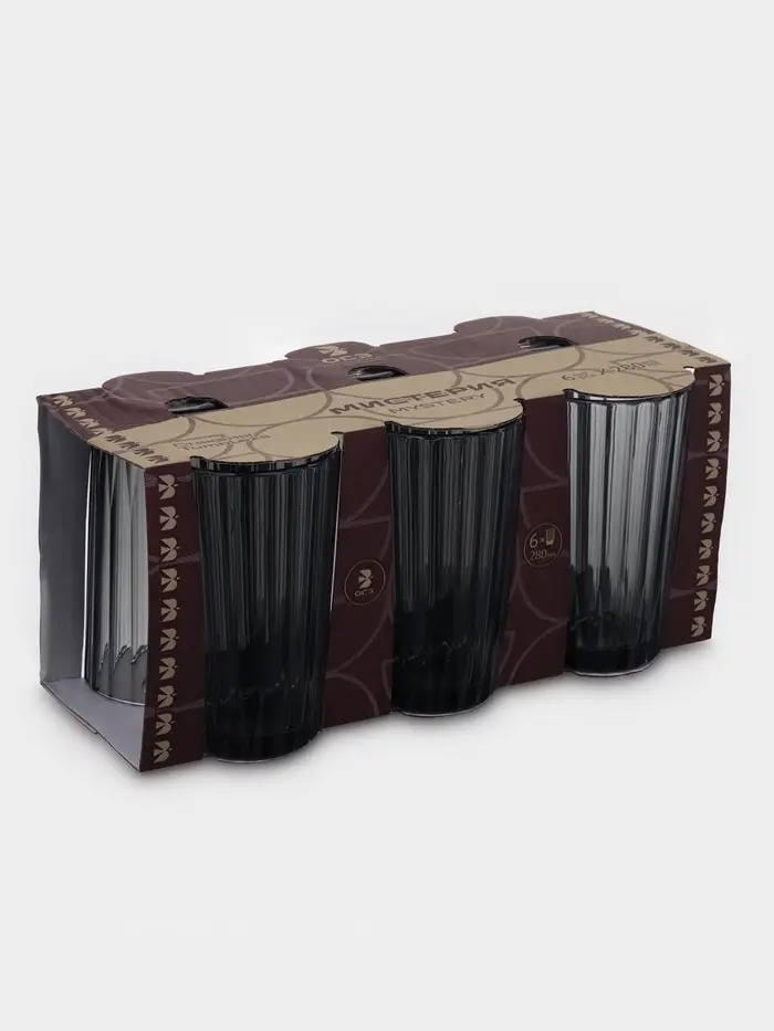 Стакан высокий "Мистерия" графит 280 мл, 6 шт.