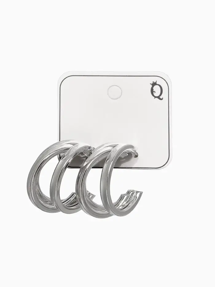 Серьги металл "Тринити" широкие, тренд, цвет серебро