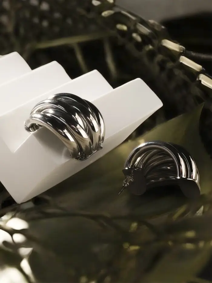 Серьги металл "Кольца" 6 рядов, тренд, цвет золото