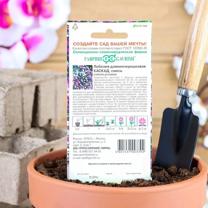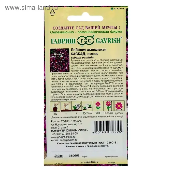 Семена цветов Лобелия "Каскад", ц/п, ампельная, О, смесь 0,01 г
