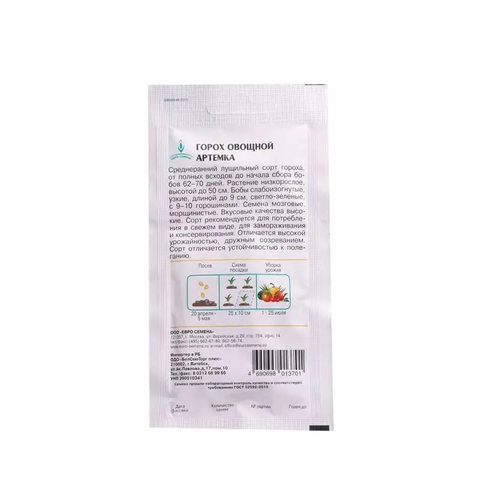 Семена Горох "Артемка" среднеранний, овощной, низкорослый, сладкий, 5 г
