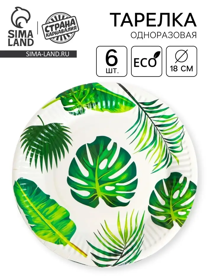 Тарелка бумажная «Тропики», набор 6 шт.