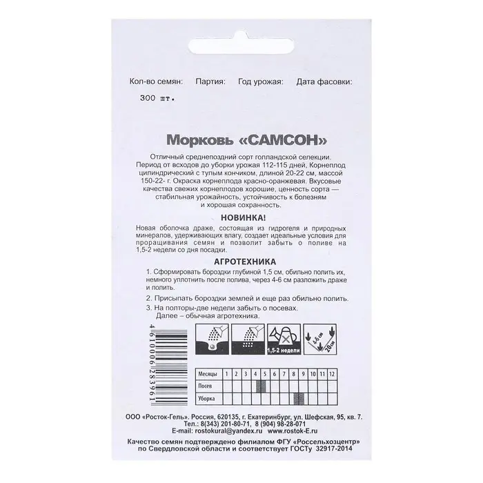 Семена Морковь "САМСОН" гелевое драже, 300 шт