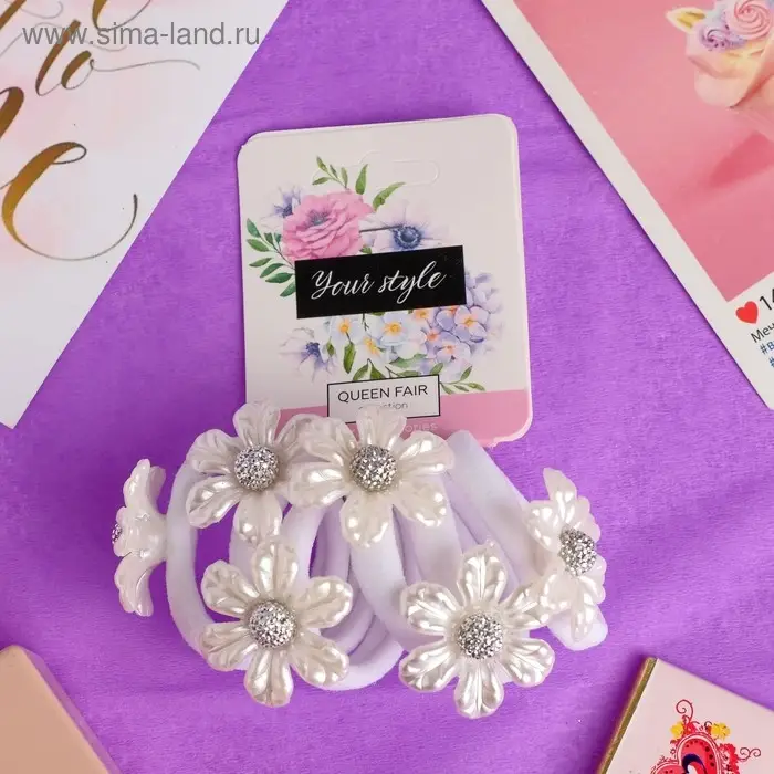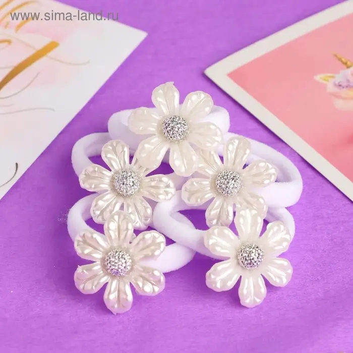 Резинки для волос QF «Беляночка», набор 6 шт., ромашка
