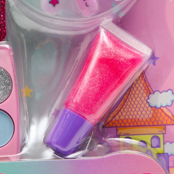 Косметика для девочек блеск для губ, 2 лака, тени, накладные ногти