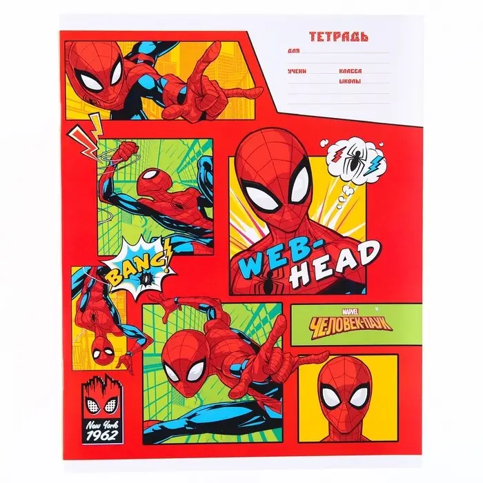 Тетрадь в линейку 18 листов, 4 вида МИКС, обложка мелованная бумага, «Человек-паук»