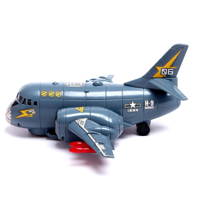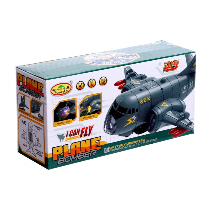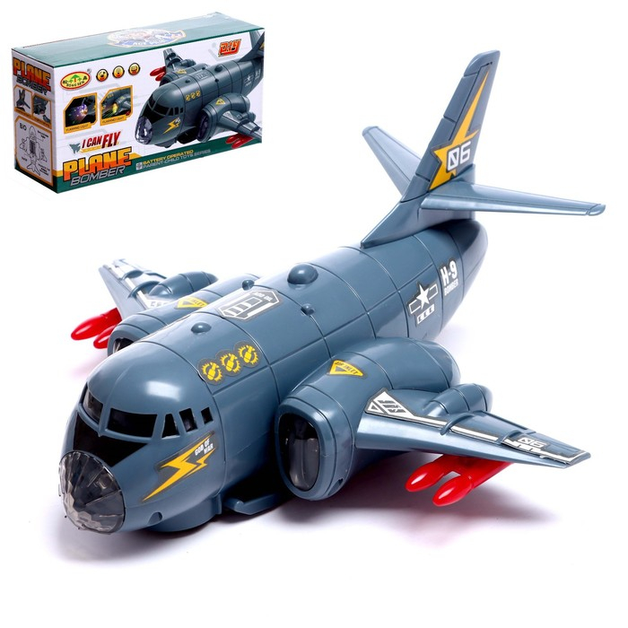 Самолет «Транспортный», работает от батареек, световые и звуковые эффекты, цвет серый