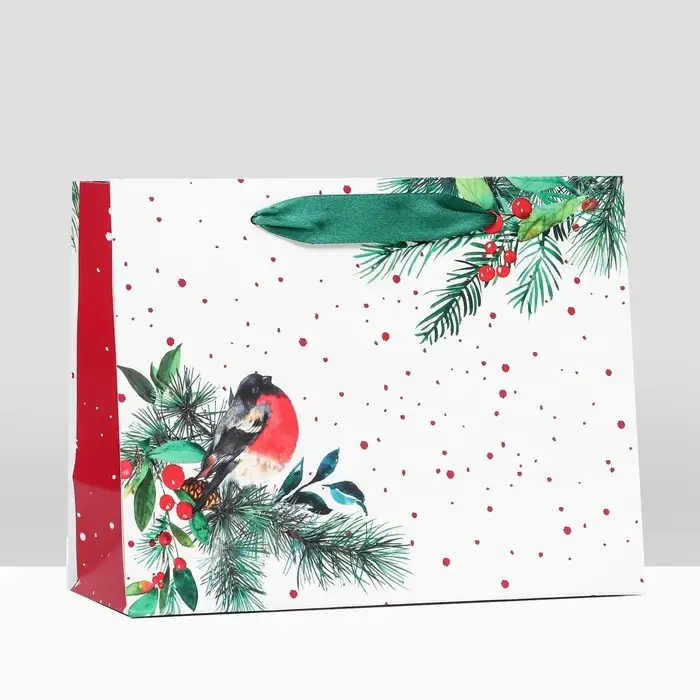 Пакет подарочный "Снегирь на праздник ", 23 х 17,8 х 9,8 см