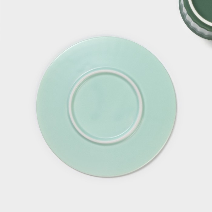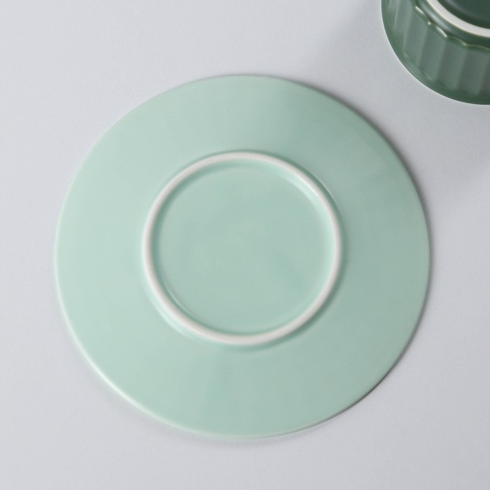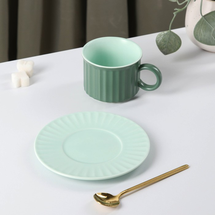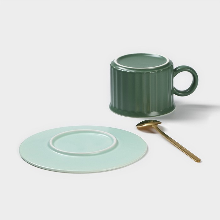 Чайная пара керамическая «Профитроль», 3 предмета: чашка 180 мл, блюдце d=13,7 см, ложка, цвет зелёный
