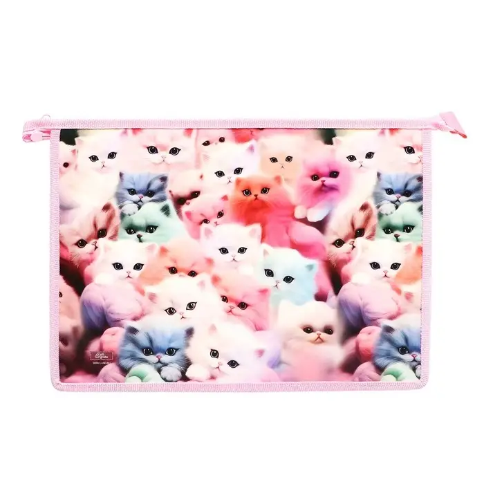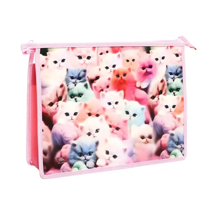 Папка для тетрадей А4, 325 х 230 х 55 мм, молния сверху, пластиковая, ПМ-А4-29 Calligrata "Котики пушистики"