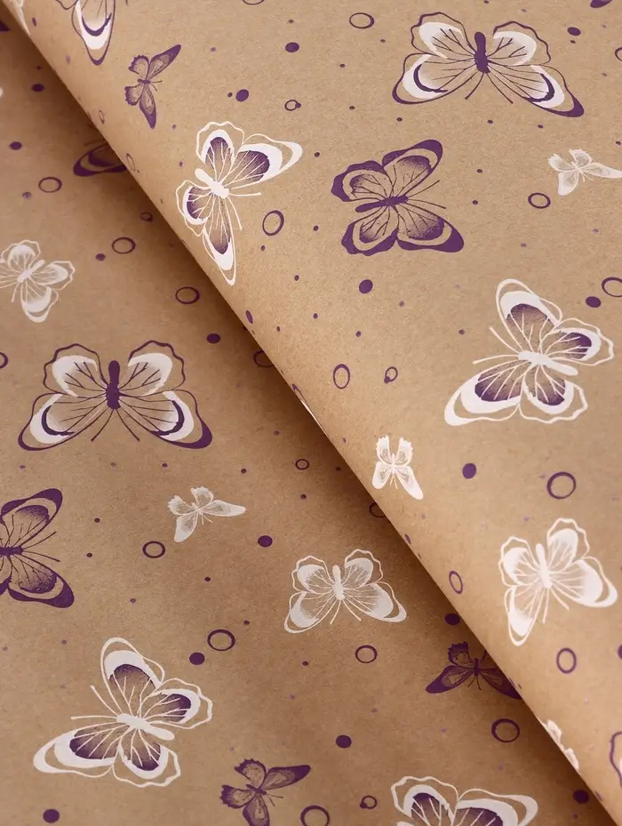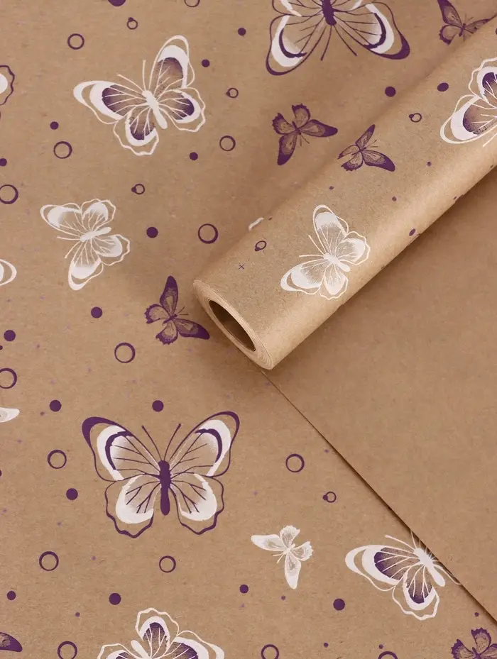 Бумага упаковочная крафт «Бабочки», фиолетовый/белый, 0.72×10±5% м, 60 г
