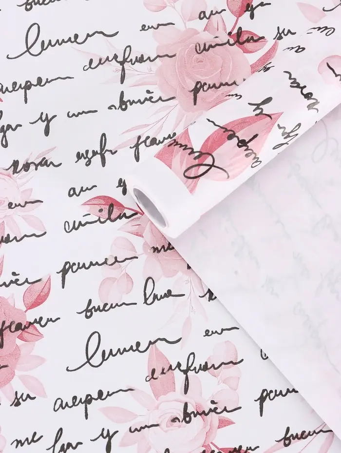 Бумага упаковочная крафт белый «Розы письмо», малиновый/графит, 0.72×10±5% м, 60 г