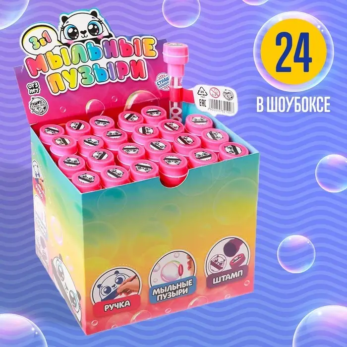 Изделие выполнено в виде яркой ручки с печатью, поэтому малыш сможет писать ей в школе, использовать в творчестве и выдувать мыльные пузыри на переменах.