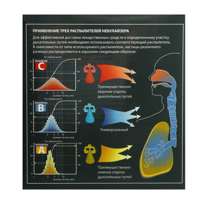 распылитель А – преимущественно для нижних отделов (например: бронхит и бронхиальная астма);